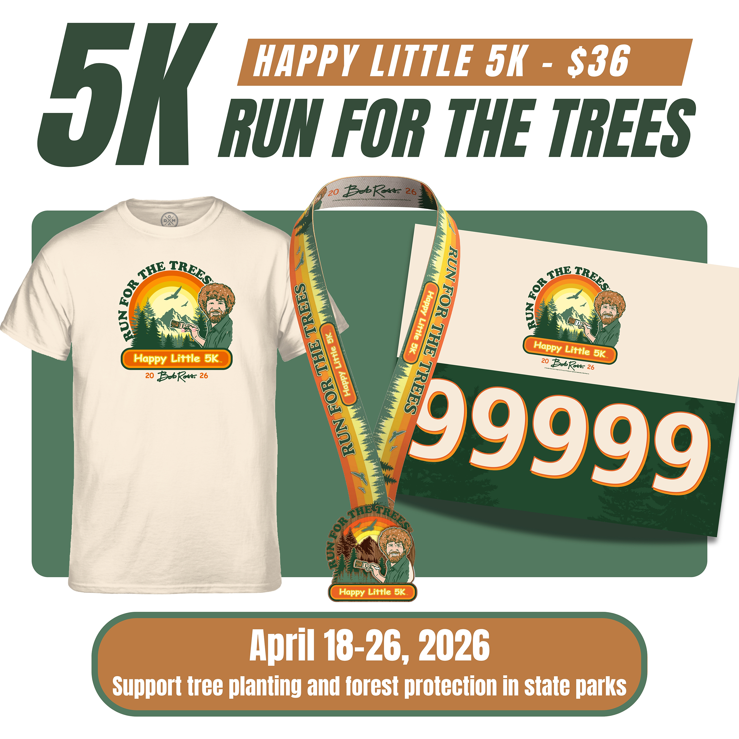 Click here to sign up for Bob Ross Run for the Trees Virtual 5K: I want to Run for the Trees!